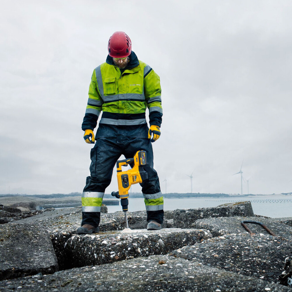 Акумулаторният SDS-max перфоратор DeWALT DCH481N е подходящ за пробиване на отвори за анкери и отвори за закрепване в бетон, тухла и зидария. Може да се справи със значително по-тежки задачи при пробиване и къртене. Захранва се с 54/18 V батерия и произвежда удари със сила 6,1 J и честота 3150 уд./мин. Максималният диаметър за пробиване в бетон със свредло е 40 мм, със специално свредло за проходни отвори – 65 мм, а с помощта на боркорона изрязаните отвори са с диаметър до 100 мм. Системата UTC незабавно изключва инструмента, когато свредлото се заклини по време на пробиване. Ярка LED подсветка осветява работната зона и заедно с ръкохватката с меко противоплъзгащо покритие гарантира приятна работа.