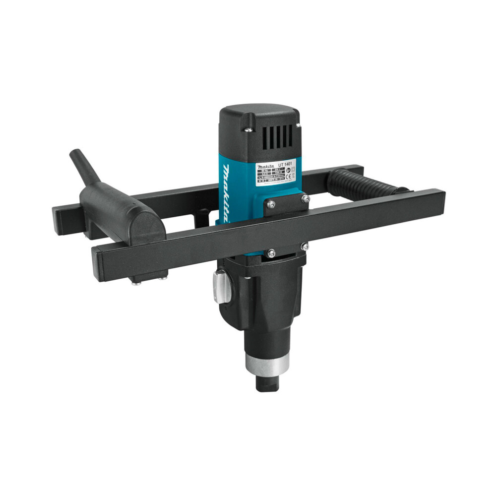 Електрическата бъркалка Makita UT1401 е предназначена за разбъркване и смесване на гипс, вар, бетон и други строителни материали с висок вискозитет. Работи с мощност 1300 W и две скорости - 0-400/0-730 об./мин и с бъркалки приставки с диаметър до 140 мм и захват М14. Може да разбърква разтвори с тегло до 50 кг.
