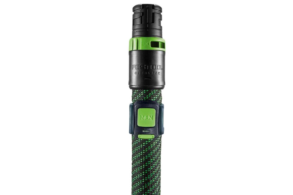 Комбинацията от Bluetooth® модул върху CLEANTEC мобилната прахосмукачка и дистанционно управление с изсмукващ маркуч Ви спестява едно ходене до прахосмукачката: просто стартирайте изсмукването директно от маркуча с дистанционното управление. Идеално за кратки почистващи дейности - просто превключете на режим на почистване, дори и когато мобилната прахосмукачка е в режим AUTO. Bluetooth® модулът върху мобилната прахосмукачка комуникира не само с новото управление, а и с Bluetooth® акумулаторните батерии на Festool. При включване на акумулаторна машина тя стартира автоматично мобилната прахосмукачка. Така вече може да се възползвате от цялата система на Festool за работа без прах дори и при работа с акумулаторните машини на Festool.