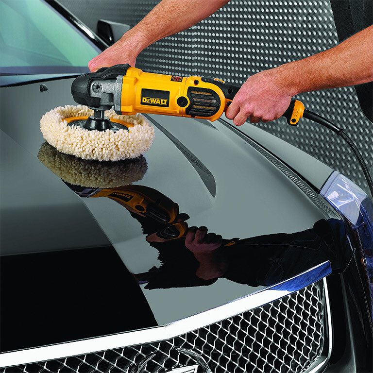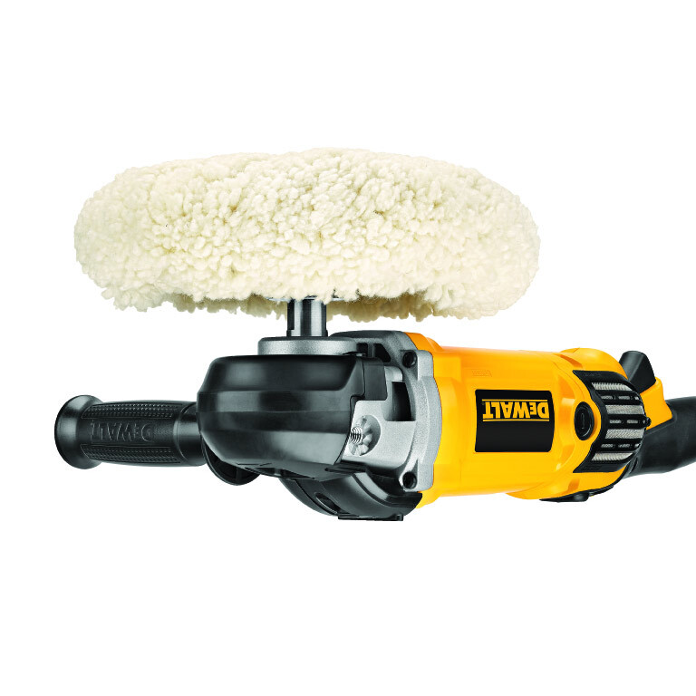 Полираща машина с променлива скорост на спусъка за различни приложения. Сменяеми въздушни филтри за предотвратяване на влизането на вълнени остатъци и груби частици във вътрешността на машината. Гумена дръжка за по-удобна работа. Блокиране на вала за бърза смяна на колелото. Графитни четки предотвратяват повреда на колектора.