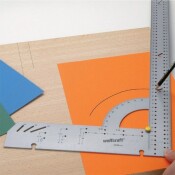 Скала за измерване на ъгли, паралелна линия, шаблон за разчертаване, ъгъл на ограничителя: 90°. Растер 32 мм.
