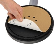 Диаметърът на плота е 225 мм, което е и най-често срещаният стандарт за шкурки. Прикрепването на шкурката към плота е чрез велкро.