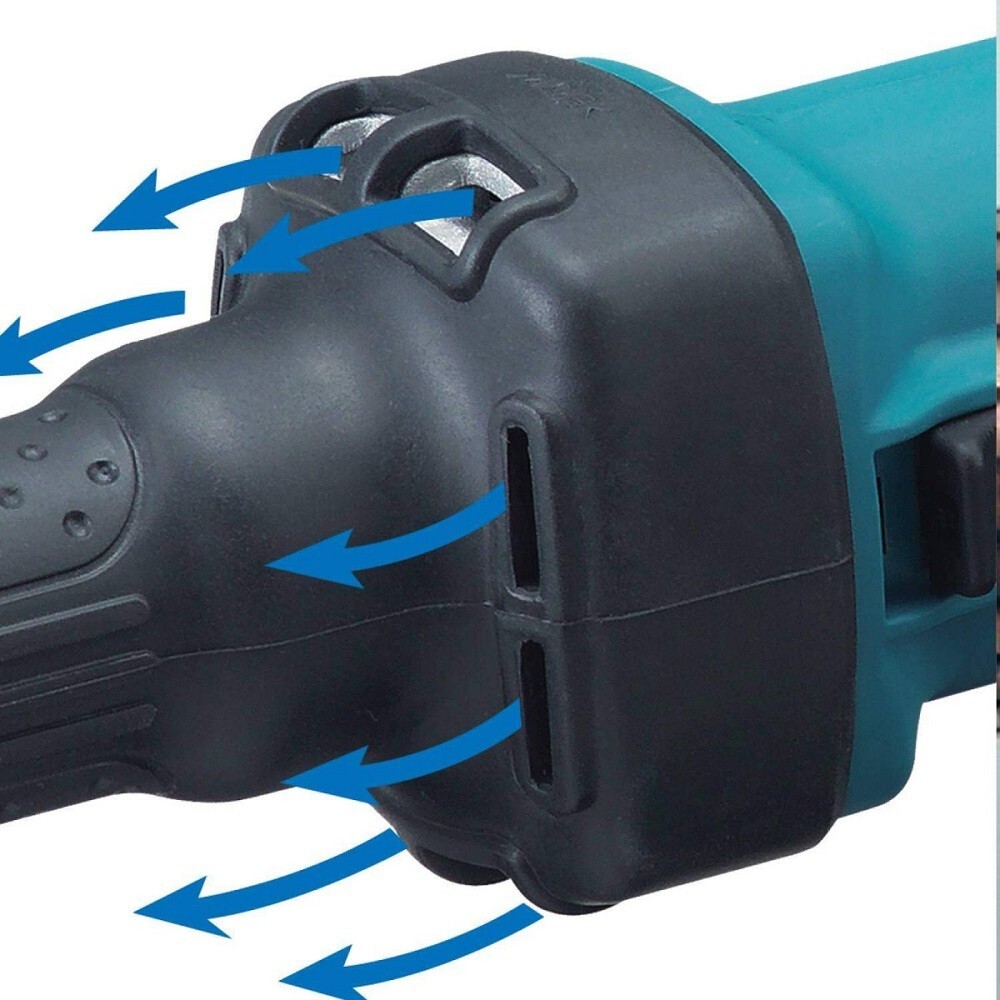 Универсален прав шлайф за разширяване чрез шлифоване, прeмахване на неравности и довършителни работи. Технически спецификации: Мощност... 400 W Обороти на празен ход... 25000 min -1 Обтягащи клещи диаметър... 6 mm Шлайф тяло диаметър max... 38 mm Тегло на инструмента... 1.7 kg Размери (Д х Ш х В)... 359 х 82 х 82 mm Предпазваща от прах конструкция на мотора. Удобна за работа с една ръка. Тънък корпус за удобен захват.