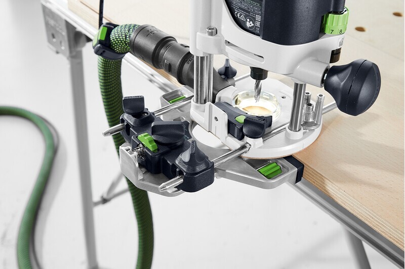 С оберфрезата на Festool OF 1010 R можете да работите с максимална прецизност. Двустранното захващане на колоната я прави изключително устойчива на усукване, а страничният упор може да се регулира прецизно и без инструменти. Лесно достъпната работна зона със светодиоден светлинен пръстен осигурява най-добър поглед върху обработвания детайл. Той се намира директно върху детайла и осигурява осветяване без сенки. Всичко за най-прецизни резултати при фрезоване. А благодарение на широката гама от принадлежности възможностите за използване на OF 1010 R са почти неограничени.