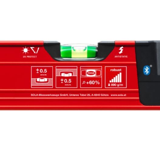 Sola Red Digital 60 e дигитален алуминиев нивелир, който може да измерва и наклони, и ъгли. Дължина 600 мм, точност на нивелира 0.05 мм/м.