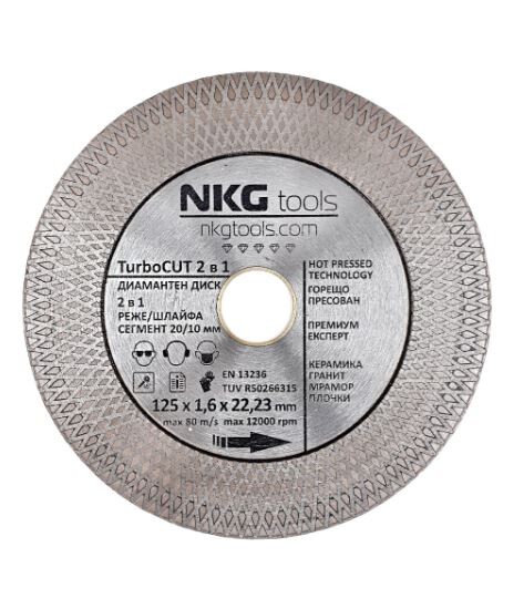 Тънък диамантен диск TurboCUT 2 в 1 - за фино и прецизно рязане/шлайфане на плочки, гранит, керамика, мрамор.