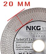 Благодарение на голямата височина на сегмента от 20 мм този диск е подходящ както за рязане под 45 градуса, така и за шлайфане на вече срязани плочки за постигане на по-презицен завършек.