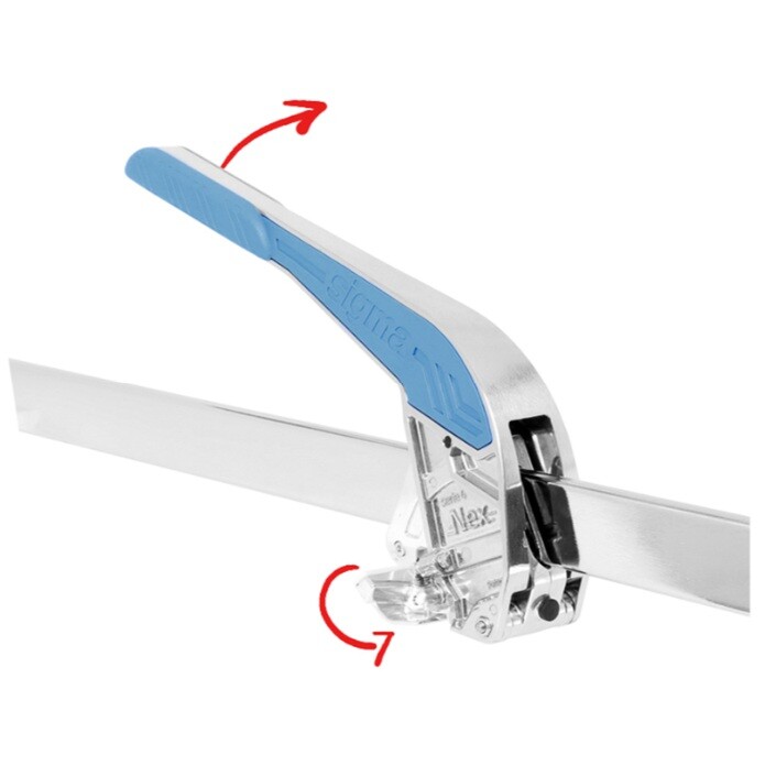 Sigma 4CN е ръчна машина за рязане на фаянс от серията Nex. Измервателният линеал се върти в двете посоки до 45° и с бутон за бързо позициониране се застопорява в най-често използваните ъгли. Разполага с двойна метрична скала. Режещото колело с диаметър 16 мм е ясно видимо от страната на оператора и е оборудвано с двойно окачване за омекотено нарязване на структурирани плочки. Върти се на ролков лагер, насочван странично от антифрикционна метална обвивка, поставена в CNC фрезован държач, за да се избегне триенето и страничната хлабина. Разцепващото краче с широчина 120 мм има сменяема защита против следи. Плъзгащата се количка е без хлабина, благодарение на 3 двуредови сачмени лагера. Има автоматична система, която държи дръжката повдигната, за да се улесни поставянето на плочката. Автоматичен стоманен компенсатор регулира предварителното натоварване на шината. Предната предпазна гумена подложка поема удара при разреза, за да не нарани основата. Машината е подходяща за рязане на плочки с максимална дължина 760 мм (диагонално 537 мм) и дебелина до 19 мм.