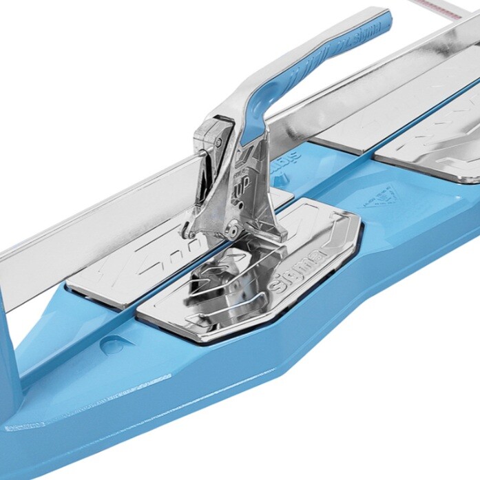 Ръчната машина за рязане на фаянс Sigma 4CU има лека и здрава алуминиева конструкция с широка основа за поддържане на плочката. Измервателният линеал се върти в двете посоки до 45° и с бутон за бързо позициониране се застопорява в най-често използваните ъгли. Разполага с двойна метрична скала. Специалната ергономична ръкохватка има автоматична система, която я държи нагоре, за да се улесни поставянето на плочката. Режещото колело с диаметър 12 мм е винаги видимо от страната на оператора. То е поставено в CNC фрезован държач с антифрикционна метална обвивка, която елиминира триенето и страничното износване на колелото. Плъзгащата се количка не се износва, благодарение на 3 двуредови сачмени лагера. Автоматичен стоманен компенсатор регулира предварителното натоварване на шината. Крачето за разцепване е с широчина 100 мм, а сменяемата защита против следи предпазва основата от удар. Може да реже плочи с максимална дължина 840 мм (диагонално до 594 мм) и дебелина до 17 мм.
