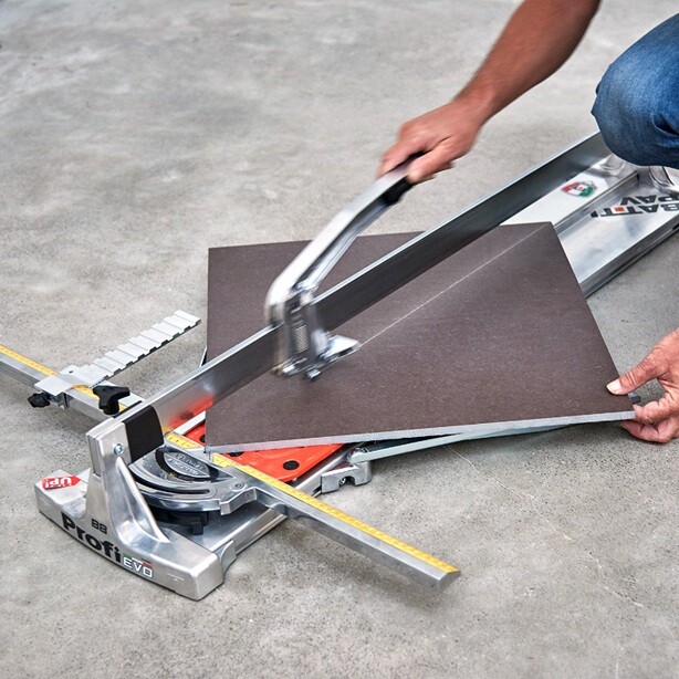 Ръчната машина за рязане на фаянс Battipav Profi 88 Evo може да реже фаянсови, теракотени, гранитогресни и други плочи с максимална дължина 880 мм и дебелина 5-15 мм. При рязане по диагонал плочката не може да надвишава 620х620 мм. Конструкцията на инструмента е еднорелсова, с надеждни лагери, линеал с 2 скали и стабилен ъглов ограничител за бърза настройка на ъгъла при рязане по диагонал. За рязане на големи плочки е предвидена странична опора.
