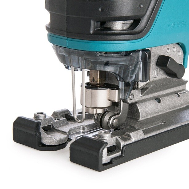 Прободният електрически трион Makita 4350FCT е професионален инструмент, предназначен за рязане на различни материали: дърво, пластмаса, метал. С него се правят както прави, така и фигурни разрези. Здравата алуминиева основа може да бъде наклонена до 45 градуса вляво или вдясно. Дълбочината на рязане в стомана е до 1 см, а в алуминий – 20 мм. Дължината на хода е 26 мм. Материалът е защитен от драскотини. Ниското ниво на шум и вибрации гарантира комфортна работа. Наличието на 4 степени на махаловидното движение на ножа дава възможност да се избере подходящата скорост на рязане.