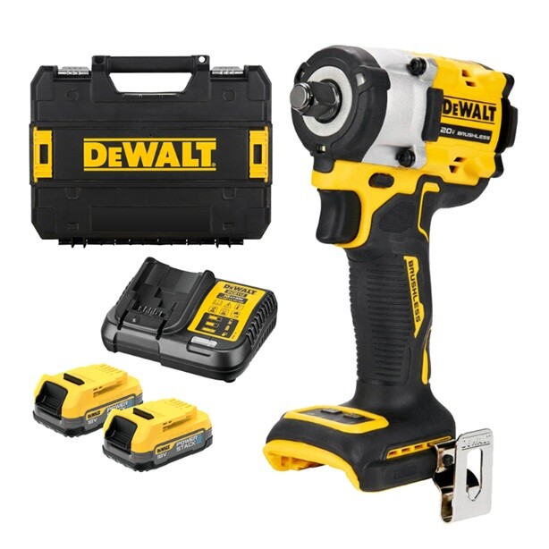 Акумулаторният гайковерт DCF921E2T е оборудван с безчетков мотор, който се захранва с 18 V батерия. Максималният му въртящ момент е 406 Nm, а честотата на ударите - 0-3550 уд./мин. Има 4 скрости, които позволяват по-голям контрол при работа върху прецизни приложения. Главата е компактна, с дължина само 125 мм, а присъединителният квадрат е 1/2". Доставя се в куфар с 2 батерии PowerStack - 18 V, 2 Ah и зарядно устройство.