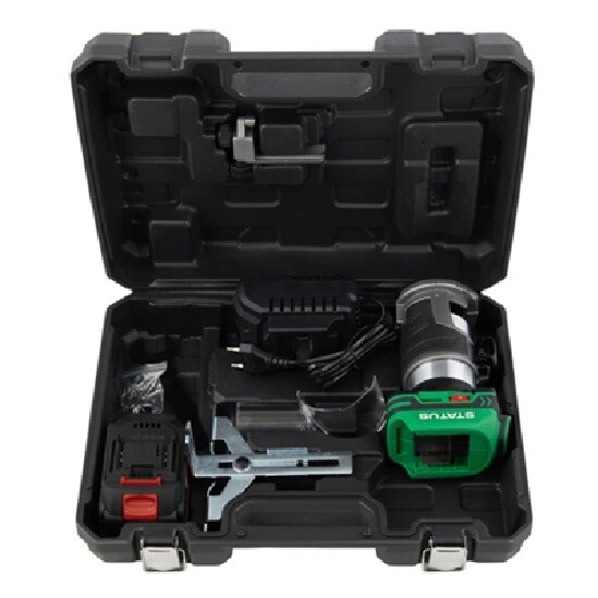 Акумулаторната челна фреза STATUS RH750BL е проектирана за прецизна и стабилна работа при различни фрезови операции, като комбинира висока производителност и отличен контрол. Машината е оборудвана с безчетков мотор, който осигурява по-дълъг експлоатационен живот, по-ниско загряване и ефективно използване на енергията, а плавният старт и електронната стабилизация на оборотите гарантират постоянна скорост дори при натоварване.