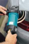Нов гумиран предпазител на главата на машината за предпазване на полираната повърхност и инструмента от повреди и драскотини. Регулиране на оборотите. D-образна гумена дръжка. Метална предпазна решетка.