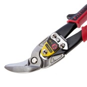 Ножица за ламарина лява усилена за рязане на до 1.2мм ламарина от студеновалцована стомана или до 0.7мм от неръждаема стомана.Режещи остриета от кована хром-молибденова стомана за сила, издръжливост и дълготрайност. Назъбени режещи остриета осигуряват здраво захващане и предпазват от плъзгане материала по време на работа. Заключващ механизъм, позволяващ лесна операция с една ръка. Цветово-кодирани, устойчиви на плъзгане двукомпонентни хватки за удобство и контрол.