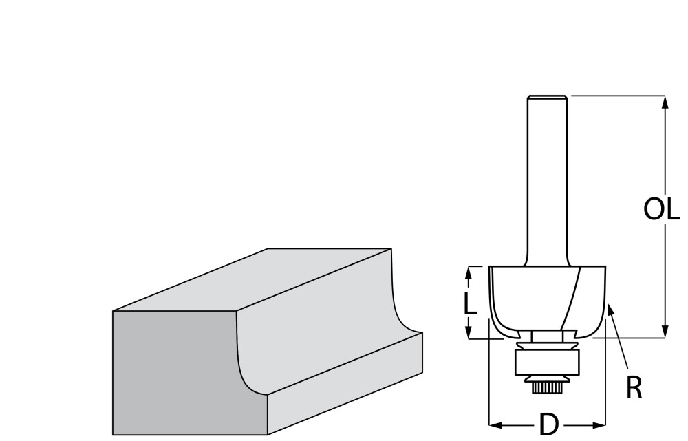 Фрезер за дърво профилен за изпъкнал заоблен профил, с лагер ф 17.3х8 мм, 51 мм, ф 8 мм Makita
