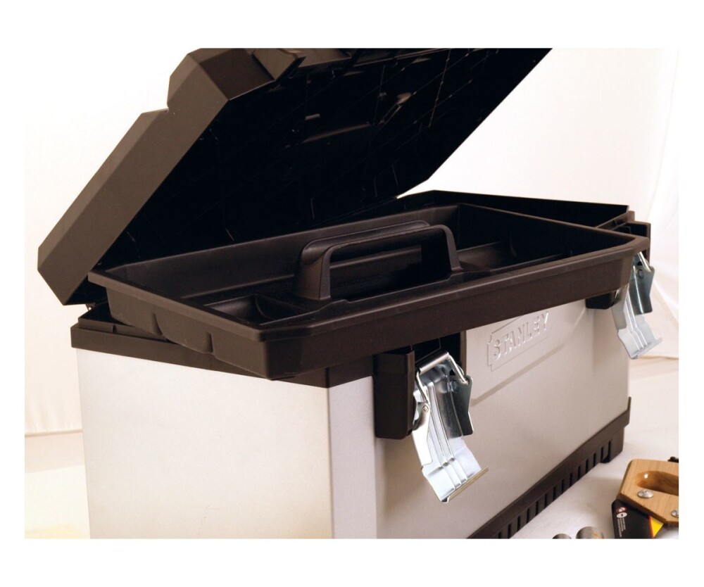 Куфарът на фирма Stanley е с две метални ключалки, които го предпазват от неволно отваряне. Може допълнително да се постави и катинар. Този модел е подходящ за зидари, електротехници, водопроводчици, бояджии, за хора, които работят с тръби и дървен материал. В него инструментите и крепежните елементи са на едно място. В горната част има табла за малки части. Дръжката е удобна, с меки вложки. Куфарът е изработен от здрава пластмаса, която може да издържи на големи натоварвания.