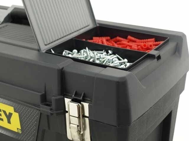 Този модел кутия на Stanley е подхофящ за съхранение и транспортиране на по-малък габарит инструменти. В капака има вграден органайзер, което го прави удобен и за консумативи. Дръжката е гуминарана за по-голямо удобство.