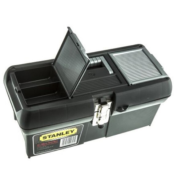 Пластмасовият куфар за инструмента Stanley Nested 1-94-857 е просторен контейнер с метална ключалка и органайзери в капака. Кутията е подходяща за съхранение на ръчни инструменти. Дръжката служи както за пренасяне на куфара, така и за отваряне на капака му. Предлага се в черен цвят.