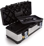 Този куфар на Stanley е разработен от здрава пластмаса и метал, за да издържа на големи натоварвания. Металните му заключалки за защитени срещу корозия.