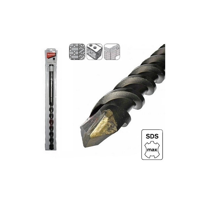 Двуканално стандартно свредло за бетон, Makita. Има карбидно острие, подходящо за бетон, зидария, естествен камък. SDS Max захват за всички перфоратори. Свердлото е подходящо за по-ниска интензивност на натоварване.