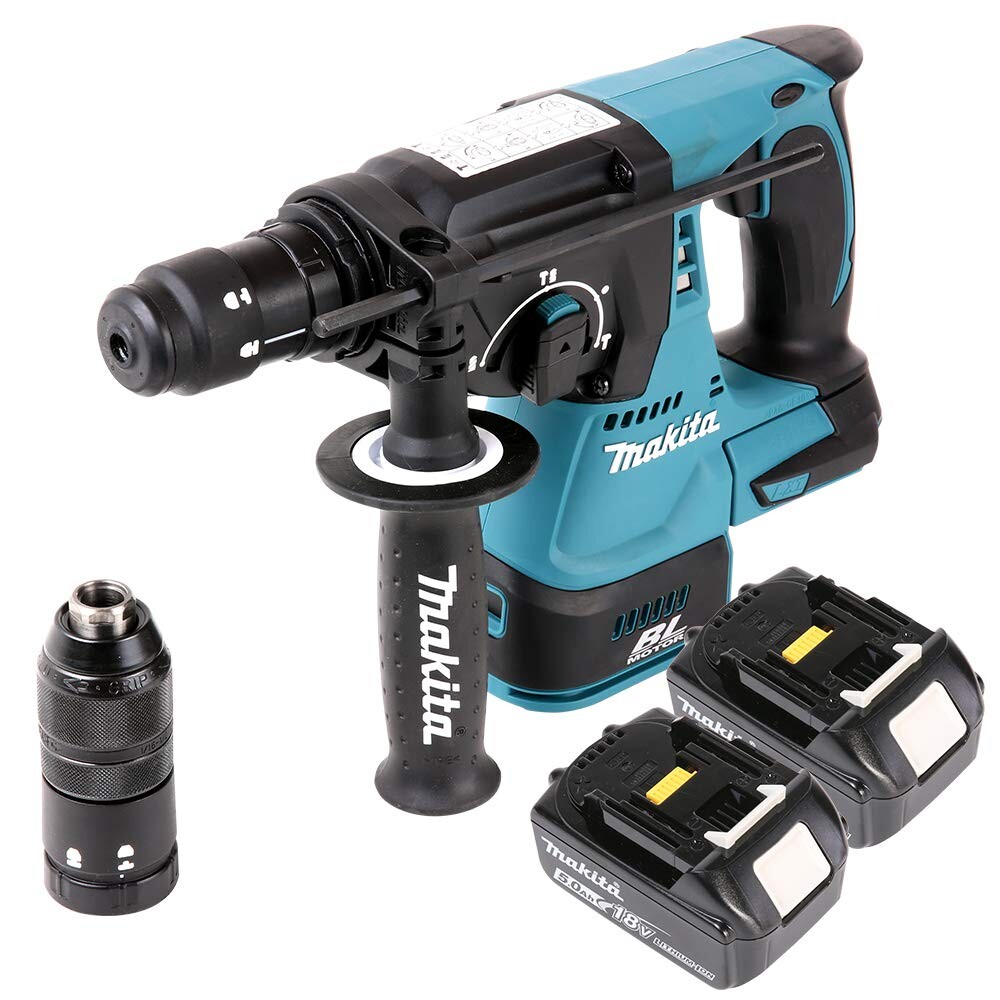 Комплектът включва перфоратор DHR243Z, бързостягащ патронник, 2бр. батерии 18V, 5.0Ah, зарядно и чанта.