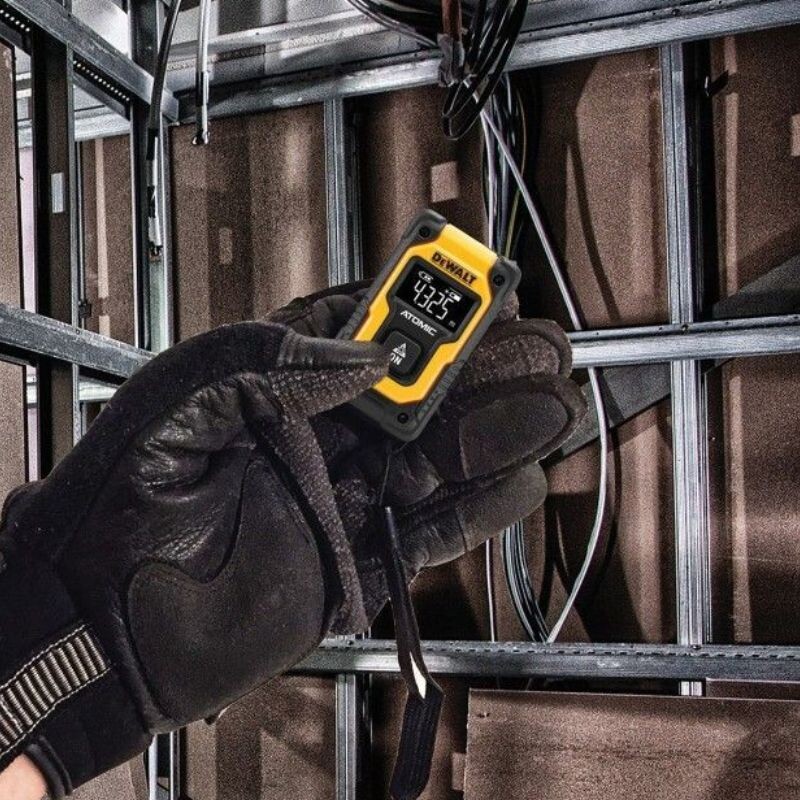 Със своя тънък и компактен дизайн, лазерната ролетка DeWALT DW055PL Atomic може да се носи в джоба и се управлява лесно - само с един бутон. Захранва се с вградена 3.7 V Li-Ion батерия, която осигурява до 1000 измервания с едно зареждане през USB. Пълен заряд батерията достига след 2.5 часа. Максималното разстояние, което може да измери, е 15 м, с точност 0,2 мм/м. LCD екранът с подсветка ясно показва направените измервания.