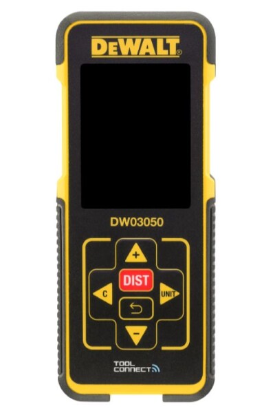 Лазерната ролетка DeWALT DW03050 може да мери разстояния до 50 м с точност 1,5 мм/м. Има гумирано покритие, което я прави устойчива на прах и вода (степен на защита IP65). Освен да измерва разстояния, може и да изчислява площ и обем. Двуредовият дисплей със задно осветяване помага за подобряване на видимостта на екрана както при слаба, така и при ярка светлина. Захранва се с 2 батерии 1.5 V, тип (AAA).