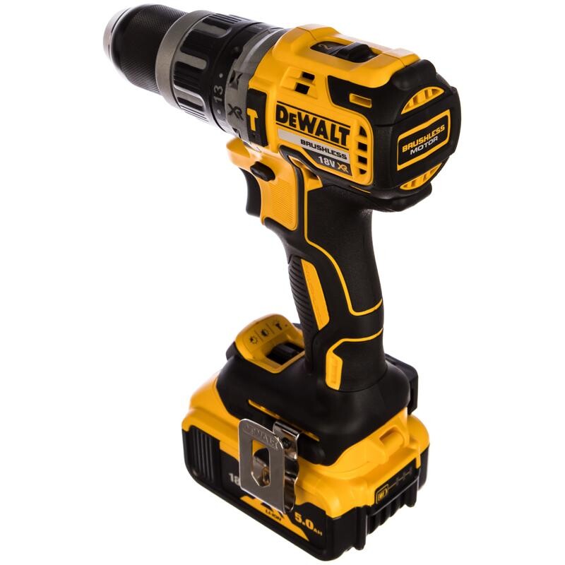 Окомплектовка: 2бр. 18,0V, 5.0Ah батерия, зарядно устройство, Доставя се в куфар. Последно поколение18.0V XR Li-Ion компактен ударен винтоверт-бормашина DeWALT оборудван с нова XR Li-Ion батерия. Ултра-компактен и лек дизайн , позволяващ използване в тесни пространства. Двускоростна изцяло метална предавка за по-интензивен режим на работа и по-дълъг живот на инструмента. 14 степени за регулиране на въртящия момент за оптимална прецизност в режим отвертка. Интелигентен дизайн на спусъка позволява цялостен контрол на приложенията. Компактен 13мм безключов патронник с единична втулка с автоматично блокиране на шпиндела за бърза и лесна смяна на накрайници с една ръка. Ярки бели LED светлини с функция забавяне за подобрена видимост и функционалност. Подобрен ергономичен дизайн и гумирана ръкохватка за повече комфорт. Li-Ion слайд батерия за удобно вмъкване и изваждане. Мулти-зарядно устройство за използване с 18V, 14.4V, и 10.8V XR литиево-йонни слайд батерии. Стоманена скоба за колан и здрав магнитен държач за накрайници за лесно съхранение.