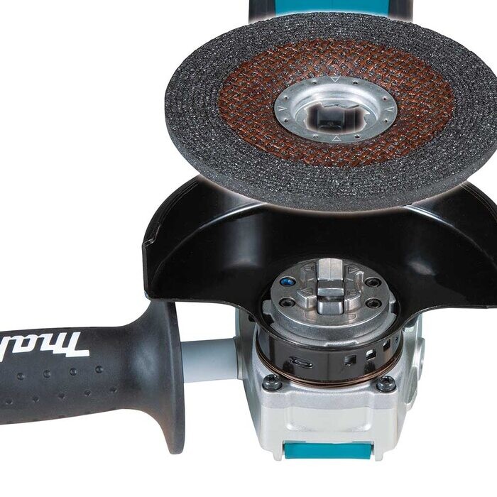 DGA521 е безчетков акумулаторен ъглошлайф на Makita със захват X-Lock, който позволява смяна на диска без ключ.