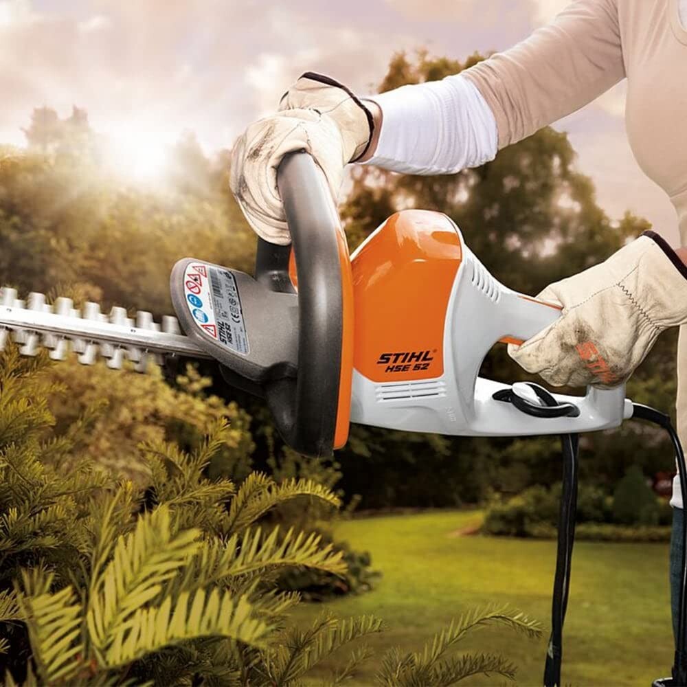 Електрическият храсторез Stihl HSE 42 се отличават с мощен, но тих двигател, както и с нож, заточен с лазер, с който се оформят храсти и се изрязват разклонени и тънки клони. Малкото тегло, ергономичният дизайн и оптималното разположение на центъра на тежестта осигуряват удобна работа и отлично управление. Предвидена е блокировка на лоста за превключване. Вграденият ограничител на дължината на кабела предотвратява случайното изключване на захранващия кабел.